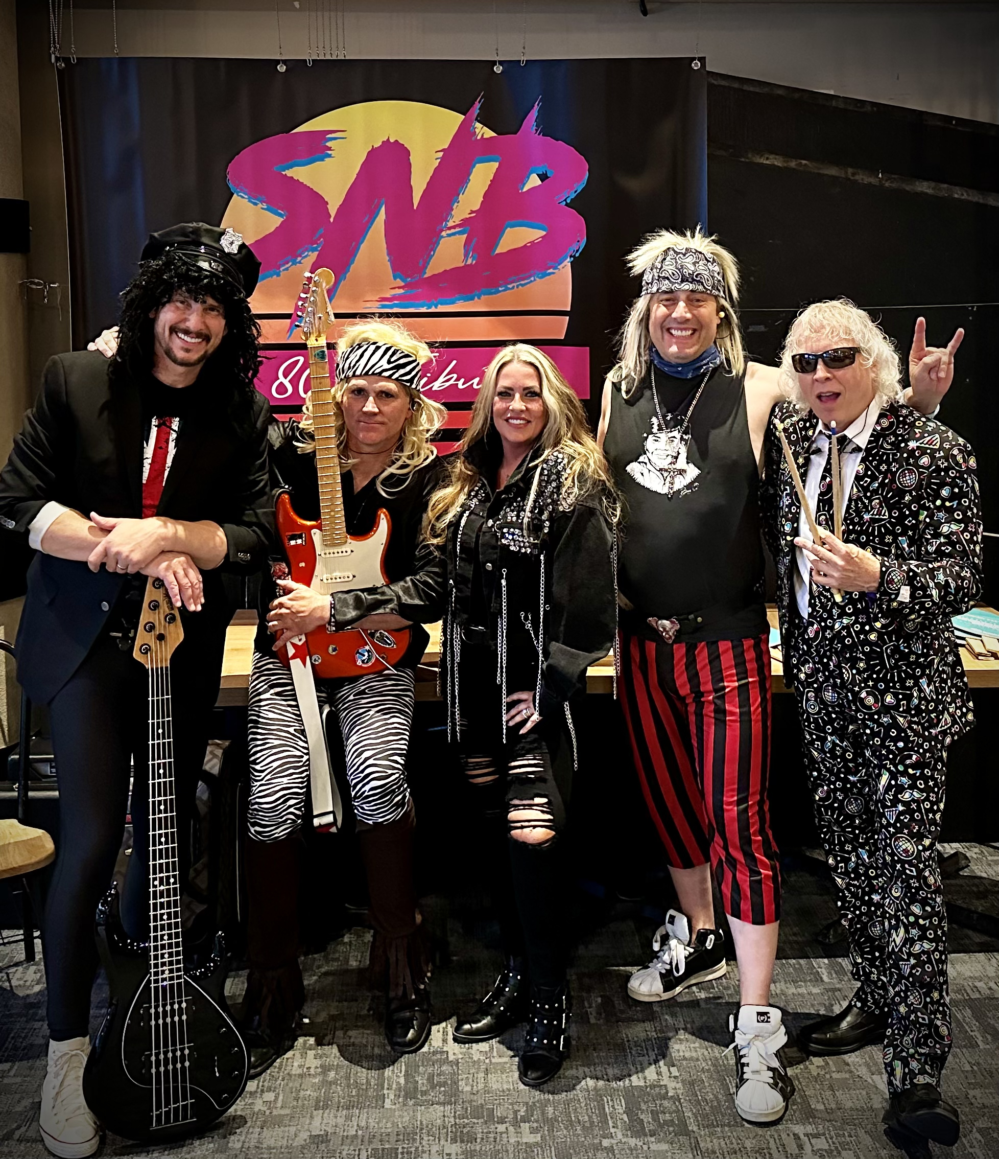 SNB 80’s Tribute was co-founded in 2004 by two former members of rival bands from Cochrane High School, home of the Cobras. The Cochrane boys dragged out the guitars and amps from their parents’ basements, and then recruited some of Calgary’s most talented musicians along the way to form the best 80’s “supergroup” since Asia and Journey. For over 15 years, SNB has been rocking the house at bars and celebrations across Southern Alberta. We offer the most diverse setlist of any 80’s cover band, engineered to keep your guests dancing all night long. Cameos and requests are welcomed. For private parties, SNB can also provide DJ services in between the live sets to satisfy all of your musical needs.